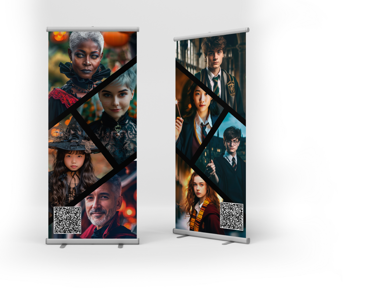 Nous mettons à votre disposition l’impression de kakémonos avec code QR et une application pour que votre public emporte un beau souvenir de votre événement.